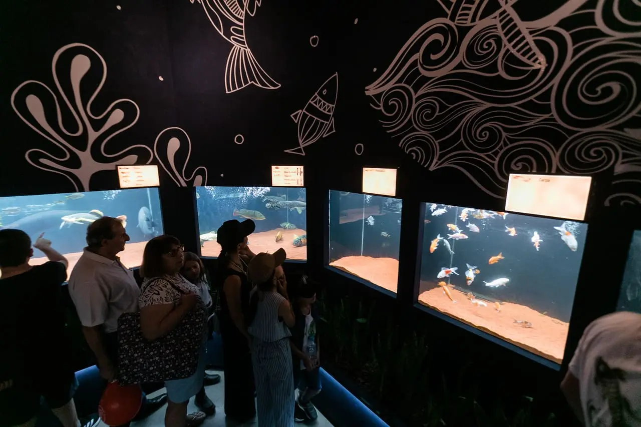 O espaço abriga 15 aquários com mais de 30 espécies de peixes de cultivo, ornamentais e nativos das Bacias do Paraná e Amazônica. Os aquários contam com placas que identificam as espécies, reforçando o caráter educativo da visita e estimulando o conhecimento sobre a diversidade aquática e a importância da conservação ambiental.